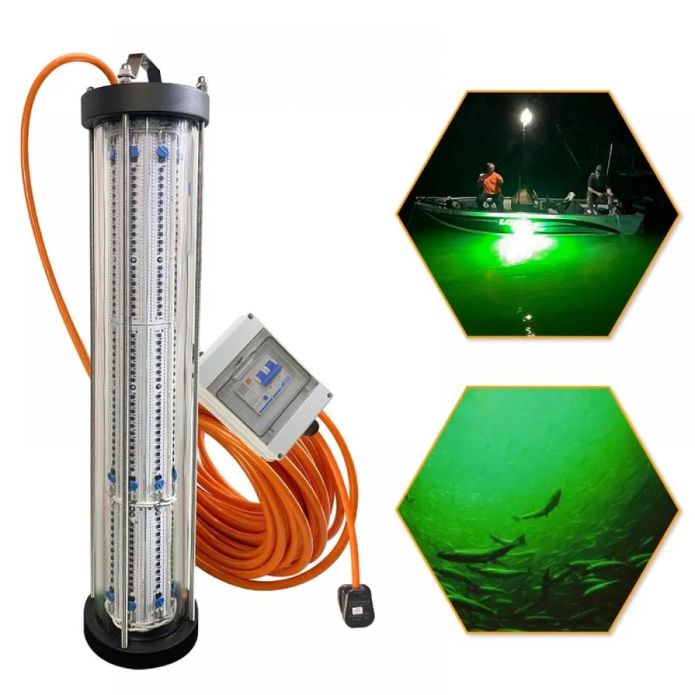 A powerful underwater fishing light designed to attract large fish like salmon and squid. Its 4000W green LED emits high-intensity light, ensuring effective fishing even in deep waters.