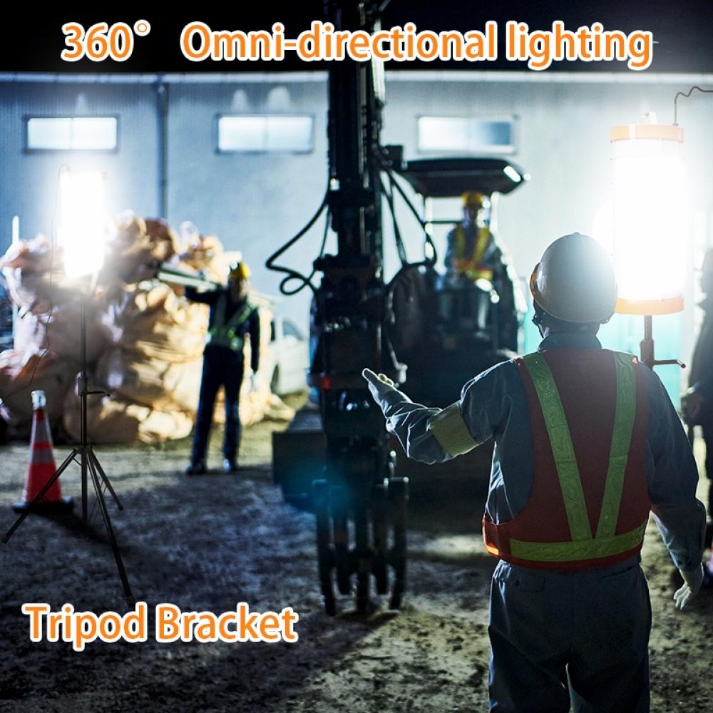 This 800W high-power rechargeable LED work light is designed for various professional lighting needs. It delivers bright, efficient illumination with its 360-degree beam angle, making it ideal for construction sites, warehouses, and repair tasks.