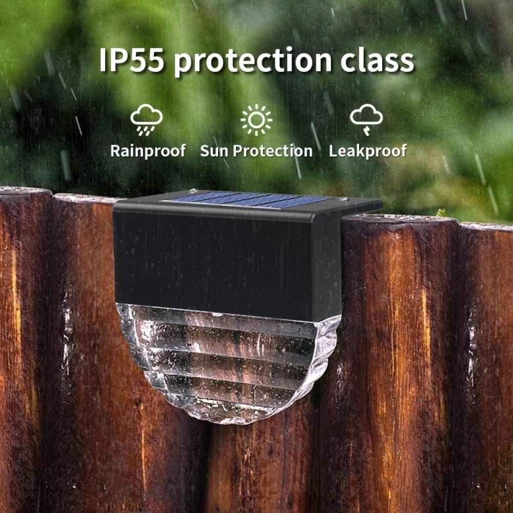 This solar-powered warm white and RGB wall light is designed for outdoor spaces like fences, decks, and walls. It combines durability with energy efficiency for long-lasting use.