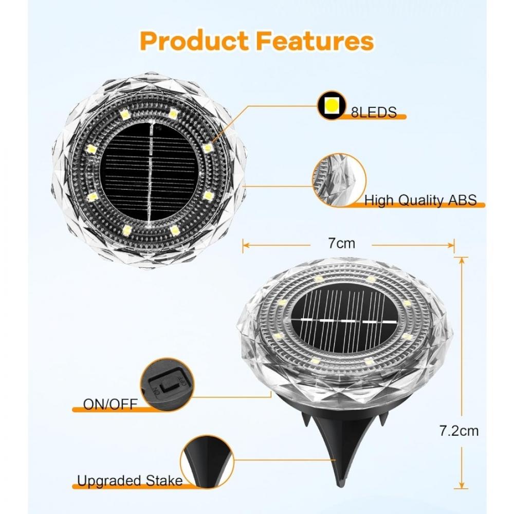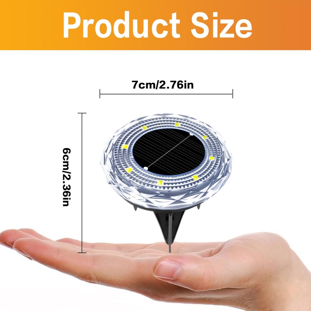 - Enhance your outdoor spaces with this solar-powered LED disk light, featuring 8 LEDs, durable waterproof design, and effortless installation.