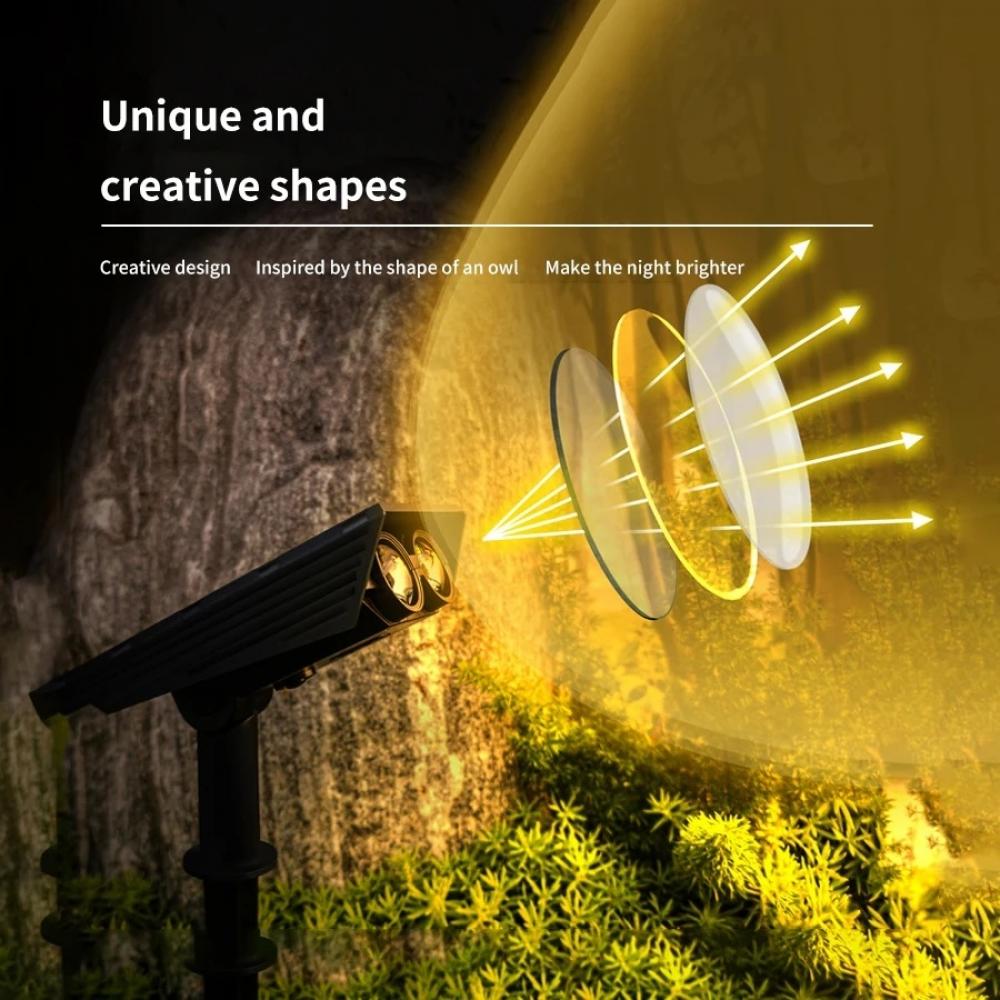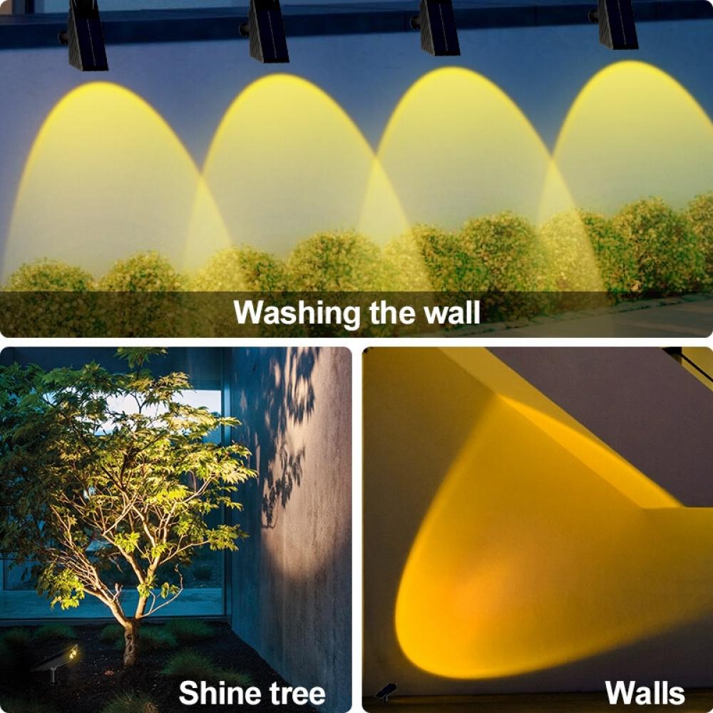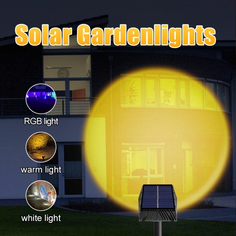 A versatile solar-powered light designed for outdoor landscapes, offering adjustable beam angles and multiple color options.