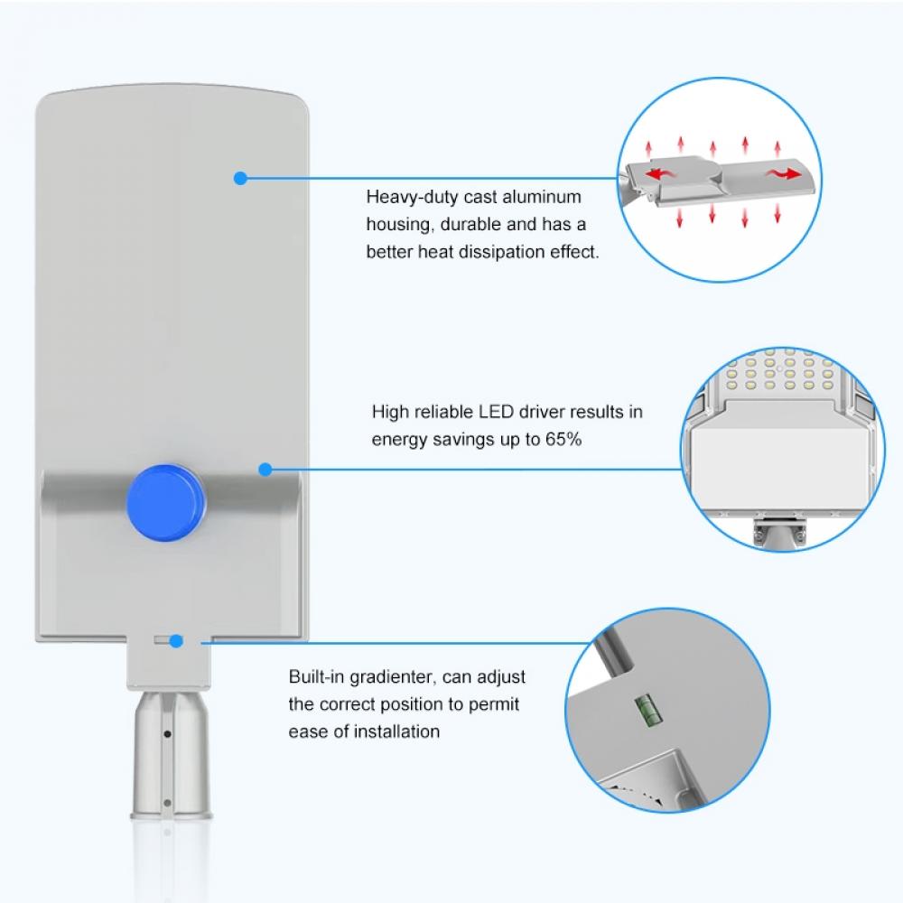 This outdoor 200W LED street light offers high luminous efficiency of 180lm/w, ensuring bright and energy-efficient lighting for streets, parking lots, and other outdoor spaces.
