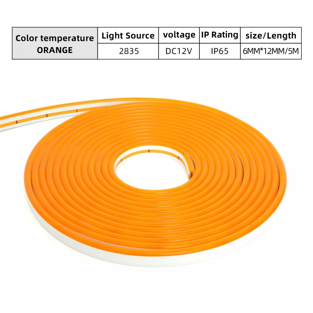 IP65 Mono Orange 5m 12V Neon Flex LED Rope Light 2835 SMD 6mm*12mm PCB