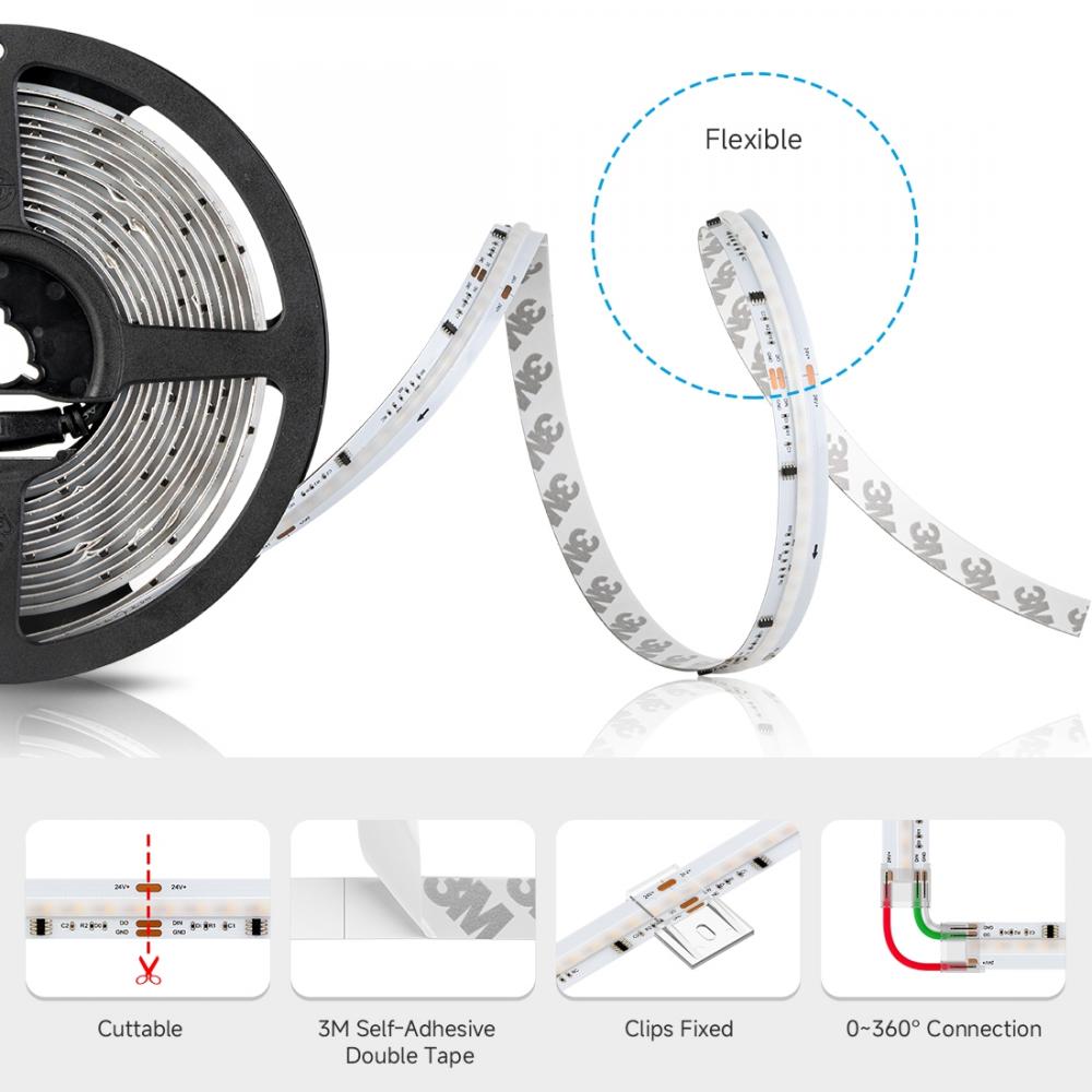 - Versatile addressable LED strip offering RGB and tunable white lighting with easy installation.