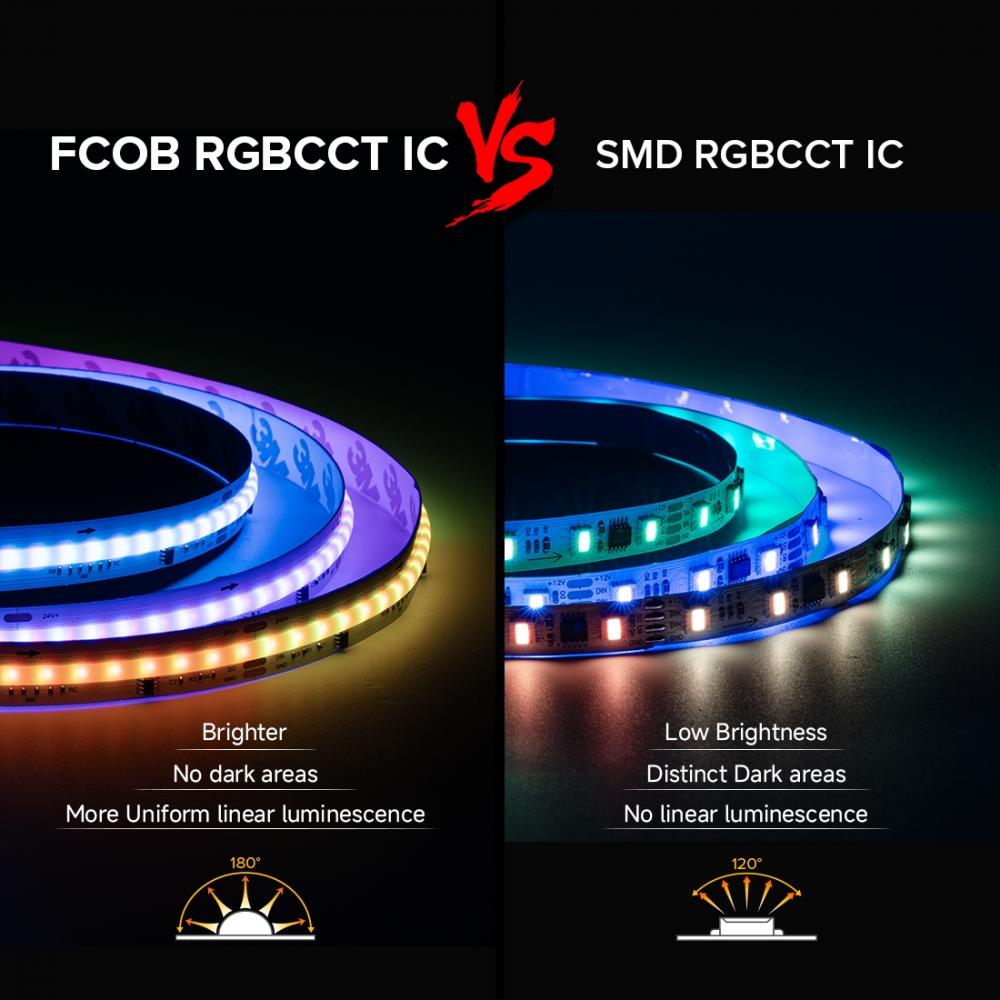 DC24V 5m 840LEDs/m RGB Tunable White 3000K-6000K RGBCCT LED Strip Light Flexible Addressable