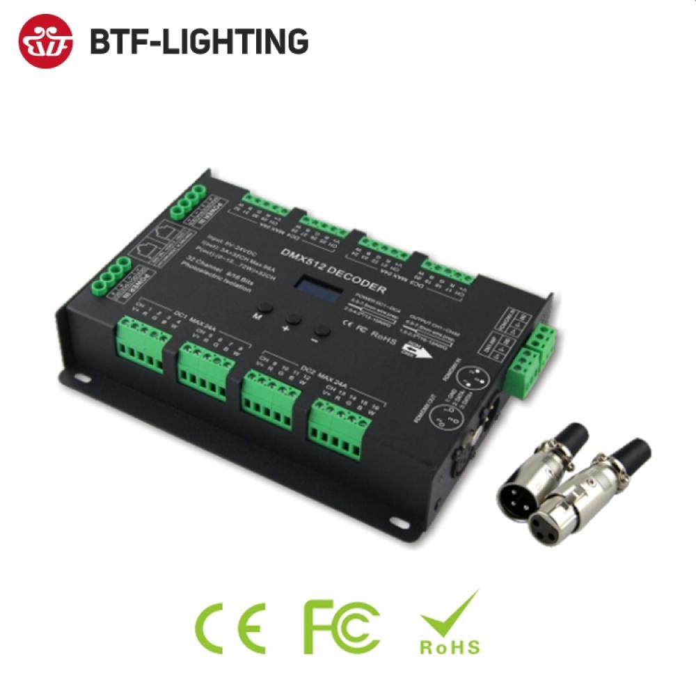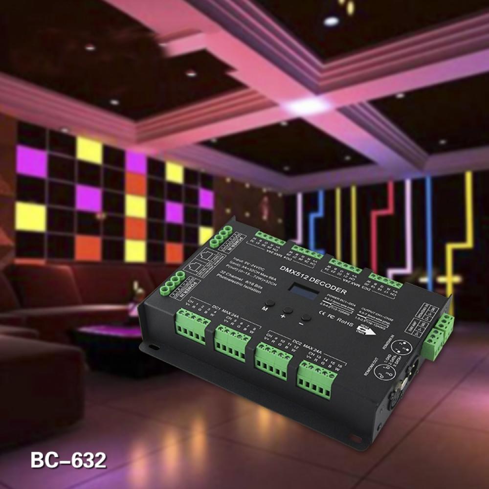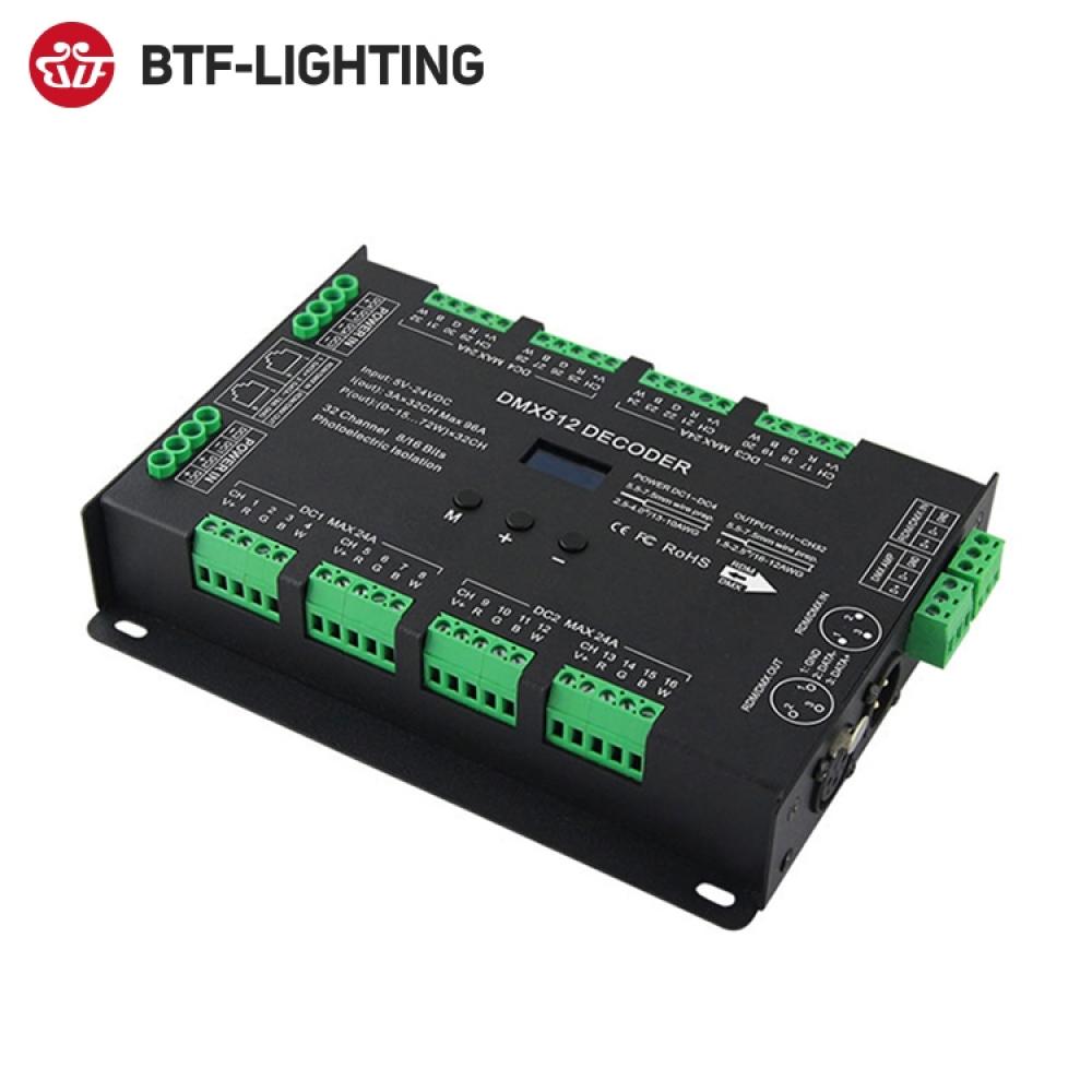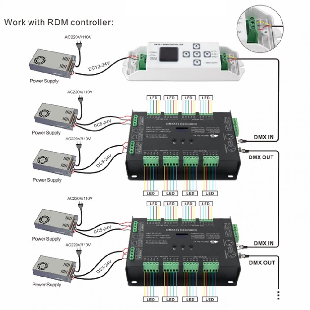 - High-performance 32-channel DMX512 RDM decoder with constant voltage output, ideal for RGBW LED lighting control with advanced 8-bit and 16-bit precision.