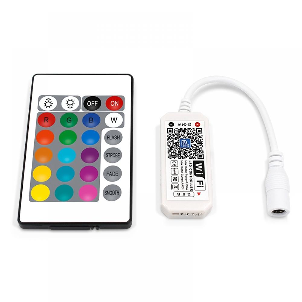- Control your RGB LED strip lights effortlessly with this Wi-Fi-enabled controller, offering seamless brightness adjustment and vibrant color customization.
