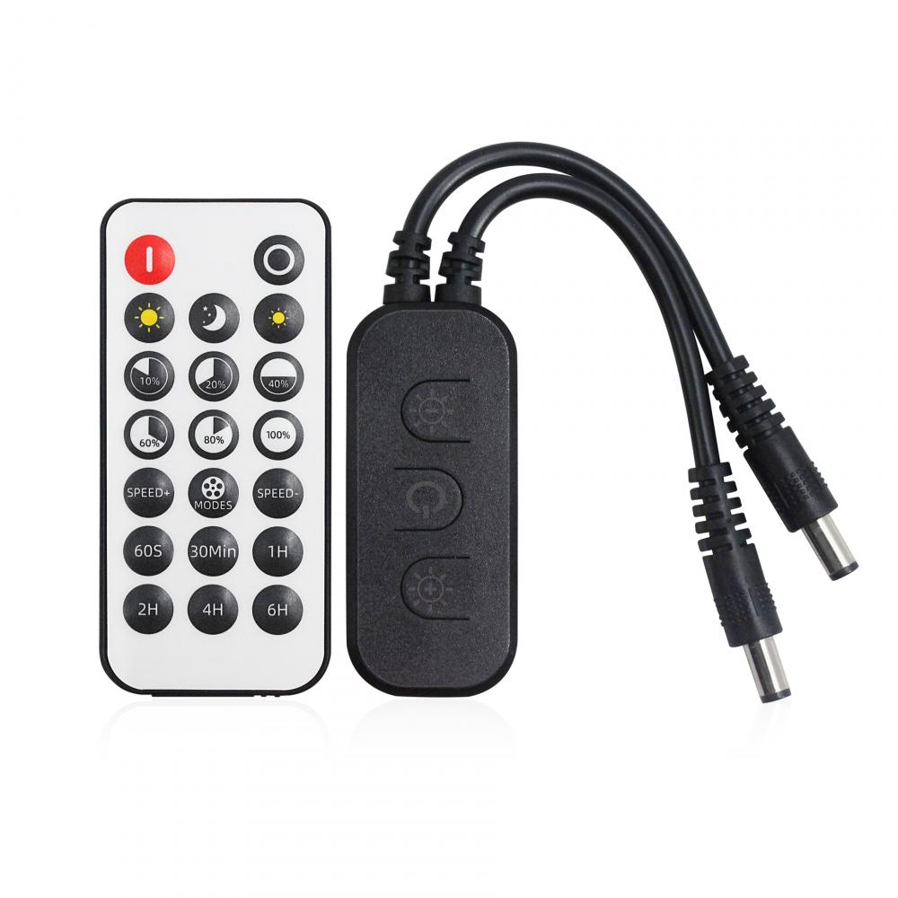 This wireless LED controller is designed for single color light strips, offering reliable and precise control through Bluetooth or RF remote. It supports a wide voltage range and ensures smooth dimming and brightness adjustment.