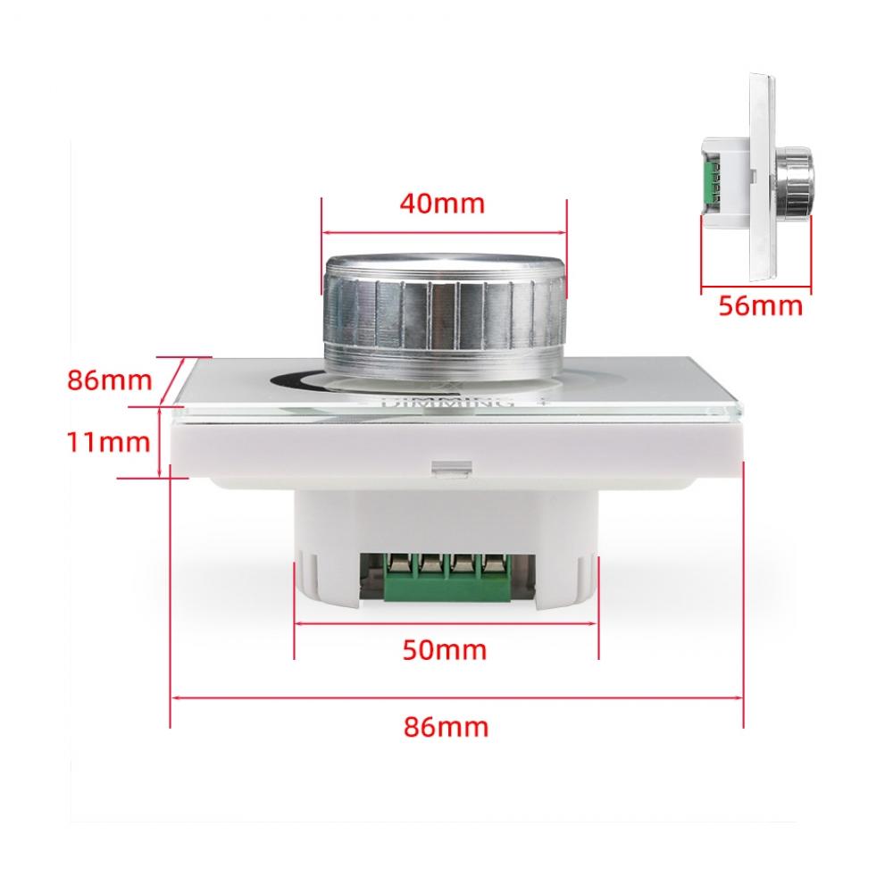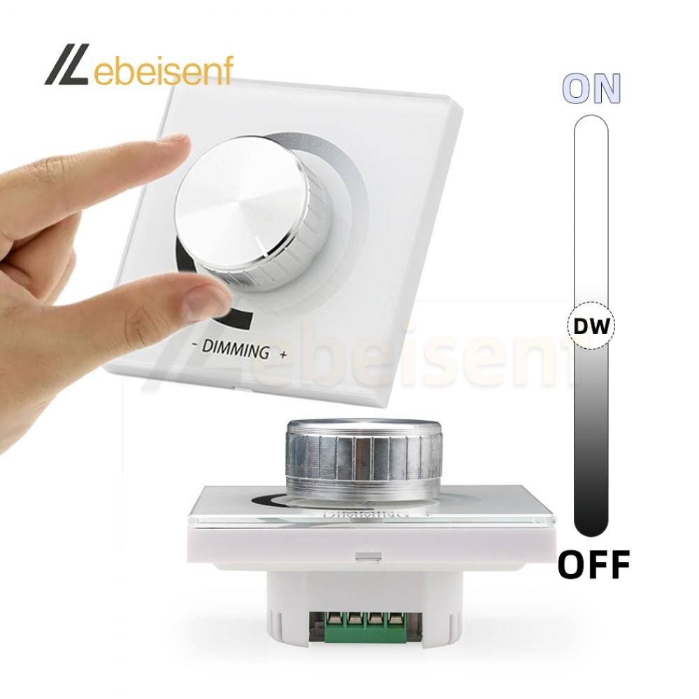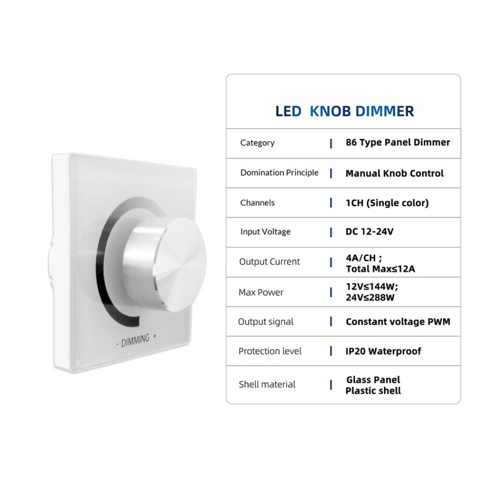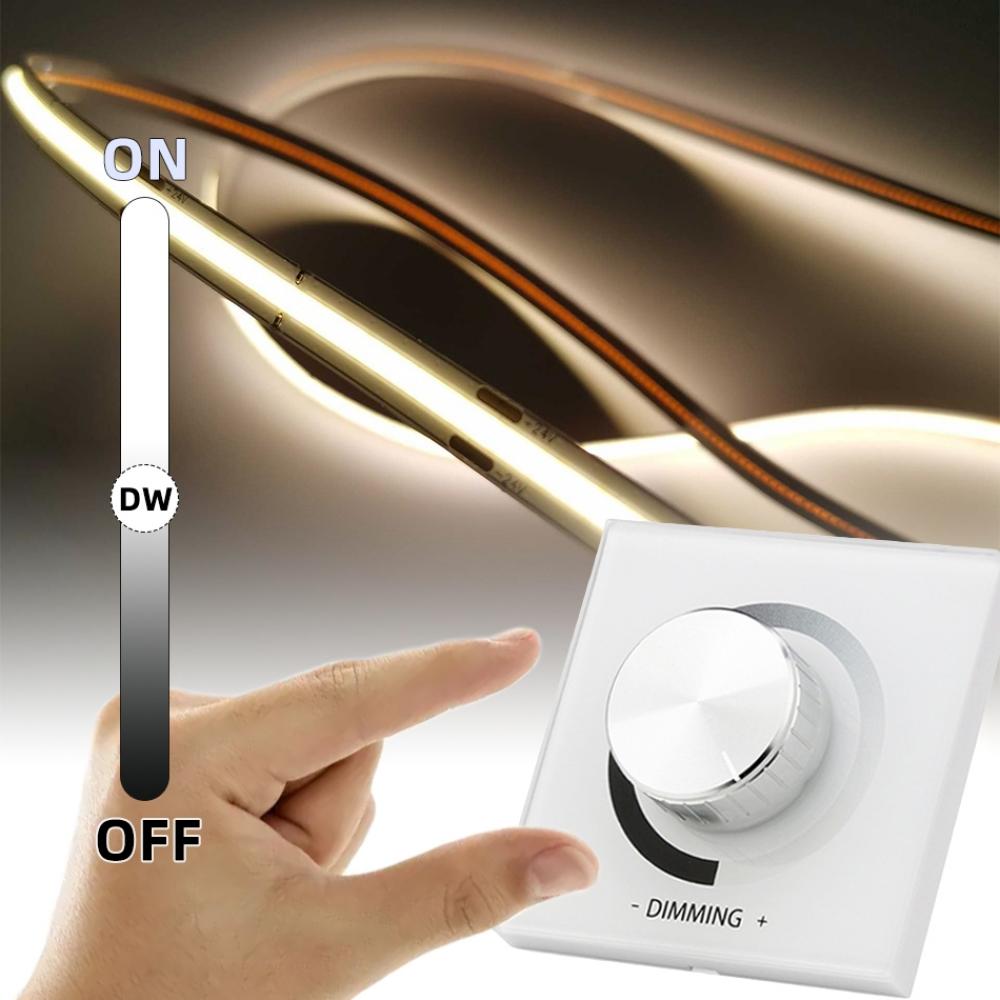 - Adjustable LED dimmer switch for single color strip lights, DC 12V/24V, 0-100% brightness control, ideal for home and commercial use.