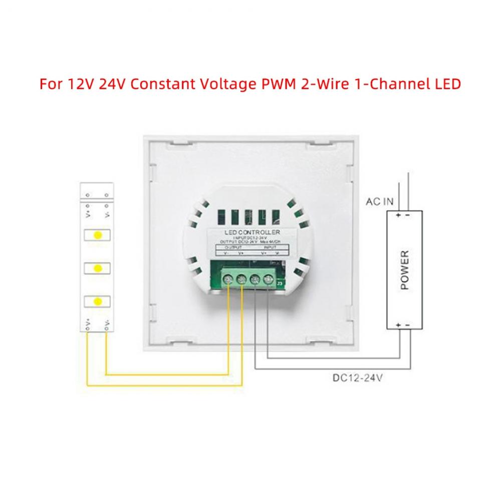 This LED dimmer switch provides precise 0-100% brightness control for single color LED strip lights. Designed for DC 12V and 24V systems, it ensures smooth and efficient dimming for various applications.