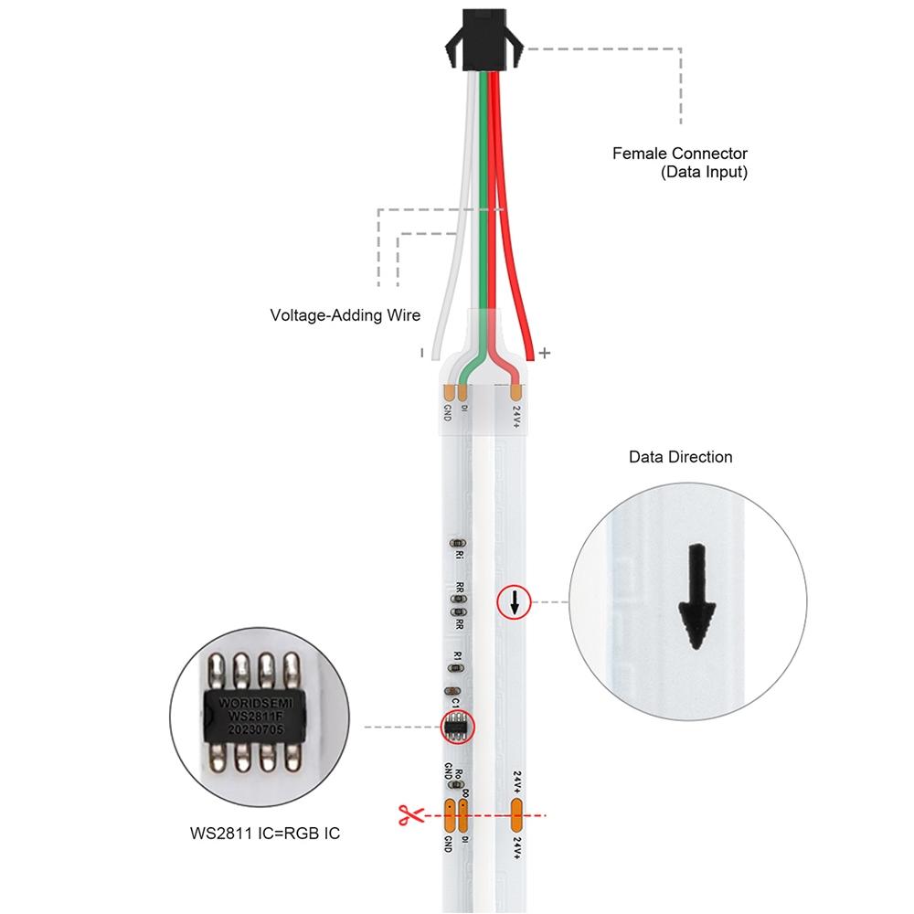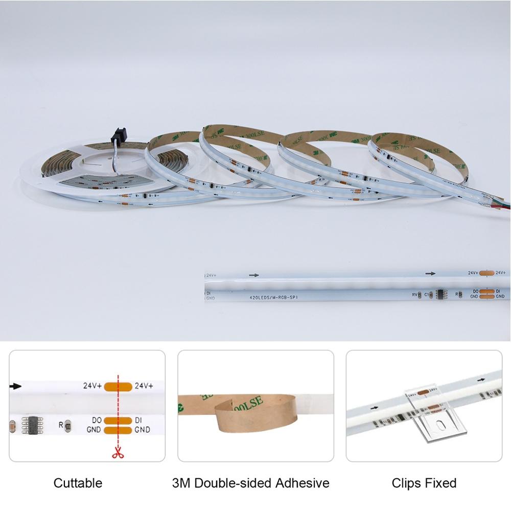 - Discover an advanced RGB COB LED strip with addressable features, vibrant digital color, and flexible installation options for dynamic lighting.