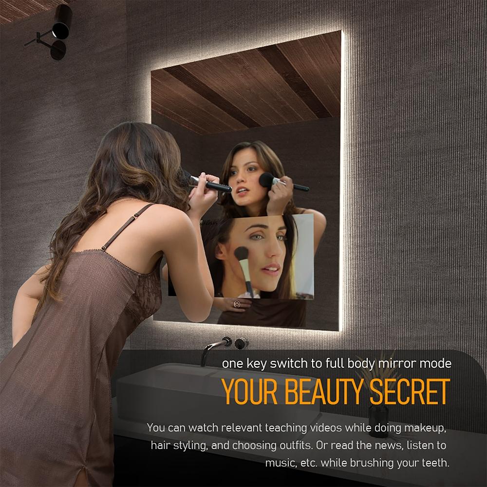 Smart Lighted Mirror With Touch Screen TV Tri-color Adjustable Light 2 in 1 Mirror TV Ideal for Hotels and RV